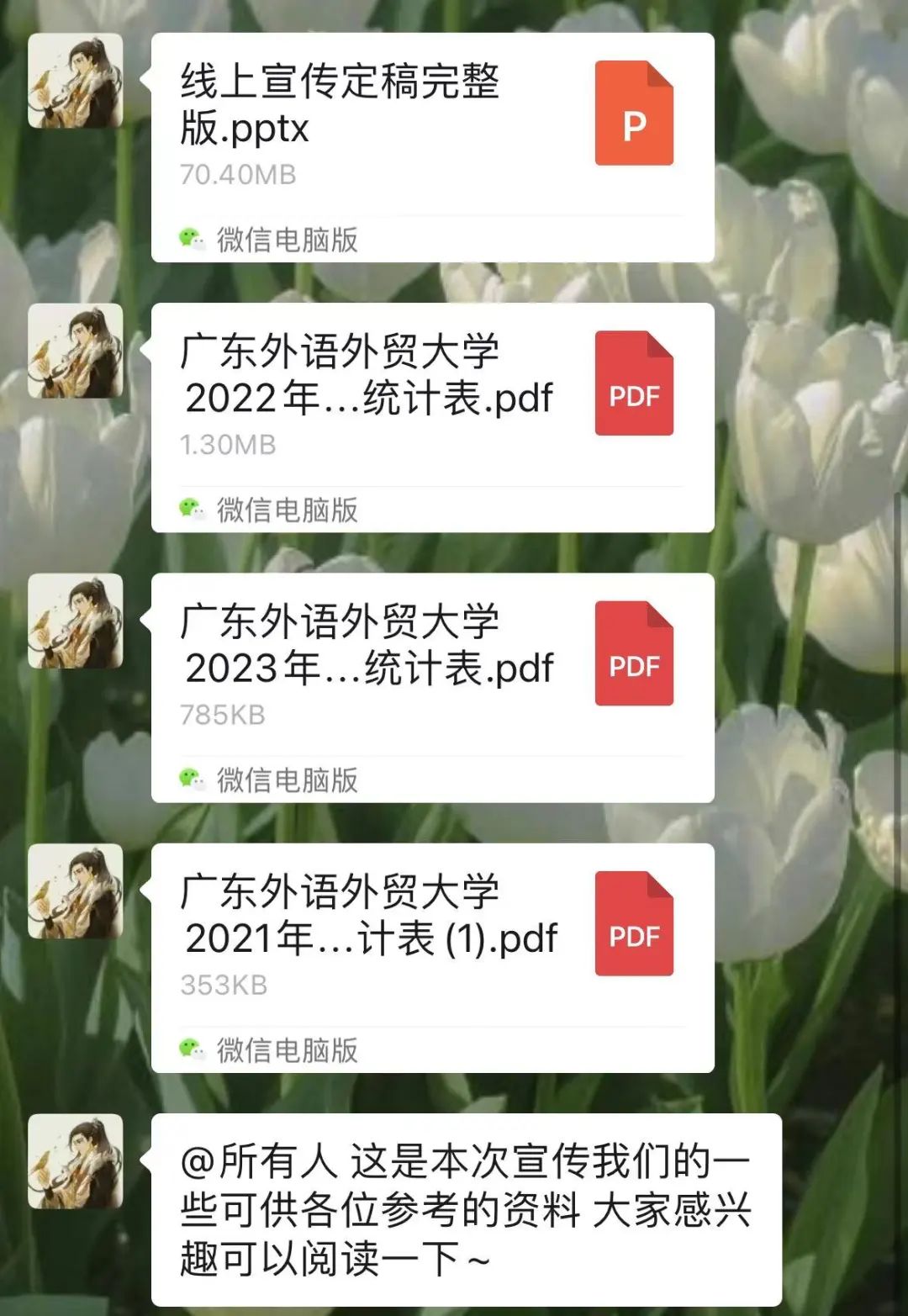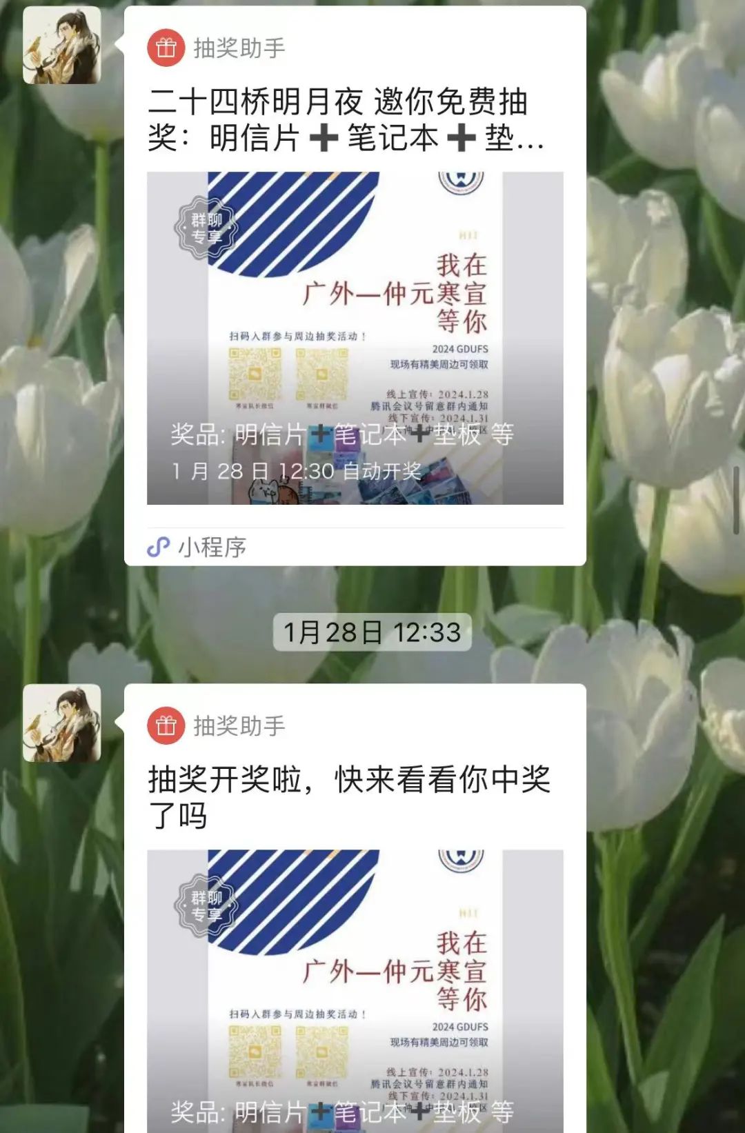 在咨询群中,我们进行答疑、广外最新资讯的转发、抽奖等,并在新年送上祝贺。