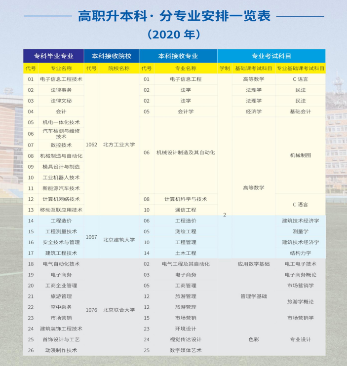 学校所有专业均可专升本,对接国内三所本科院校分别是