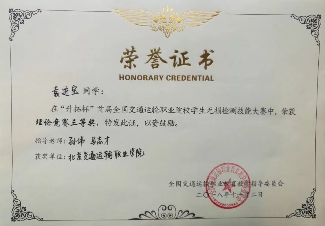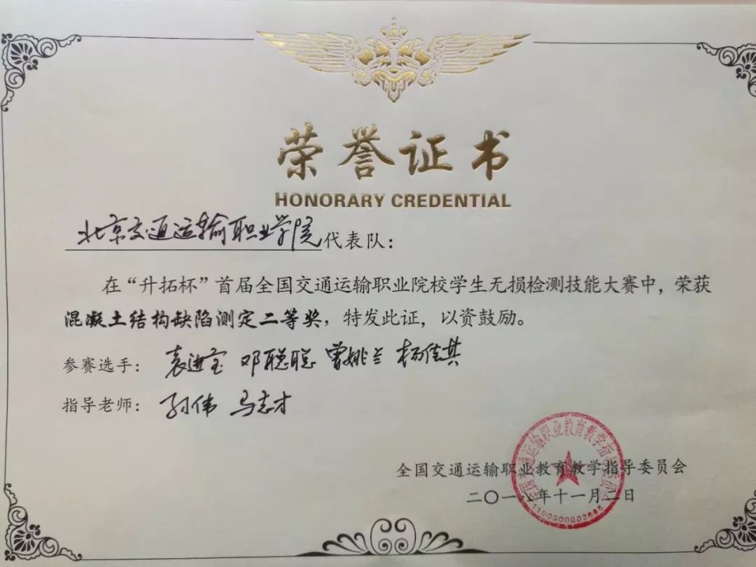 “混凝土结构缺陷测定二等奖”、“理论竞赛三等奖”