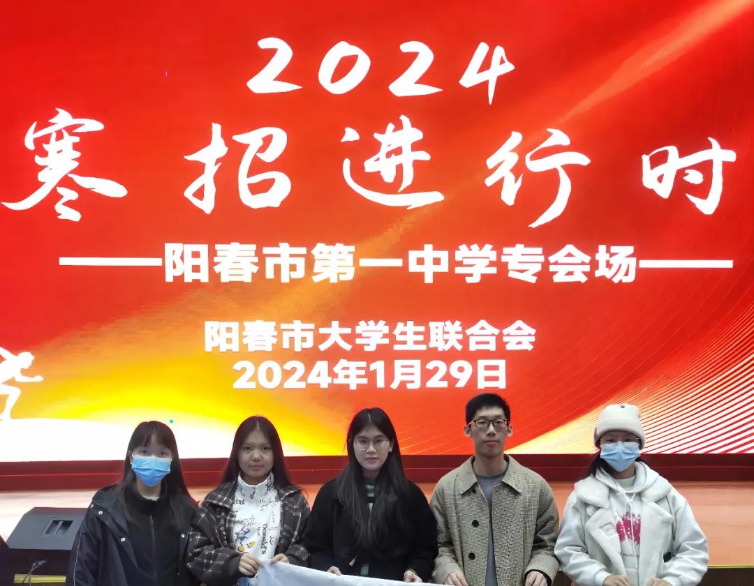 阳春一中寒招小分队参与由共青团阳春市委员会、阳春市大学生联谊会主办的“寒招进行时”活动,并于1月29日前往阳春市第一中学开展招生宣传。另一支队伍阳江一中寒招小分队参与由共青团阳江市委员会、阳江市第一中学主办,阳江市大学生联谊会承办的“人才返乡工程——2024年阳江籍大学生返校高校宣讲活动”,于2月3日前往阳江市第一中学开展招生宣传。