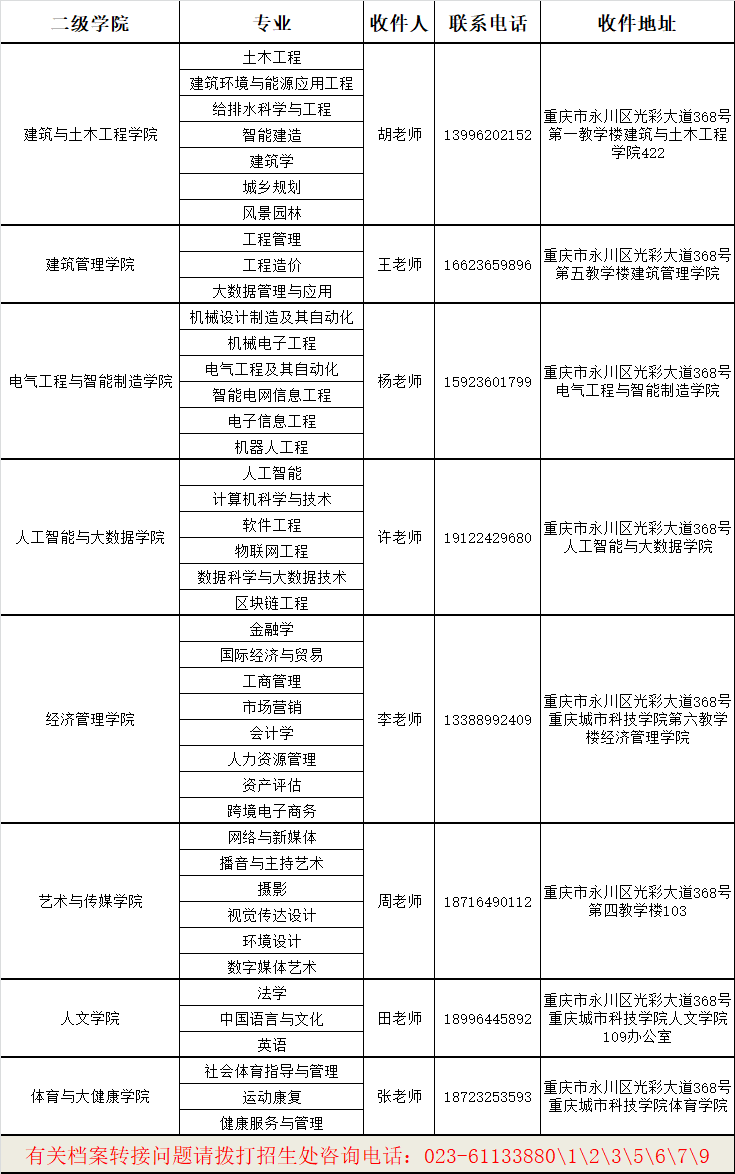 ②邮寄给对应二级学院,具体二级学院邮寄信息参照下表。