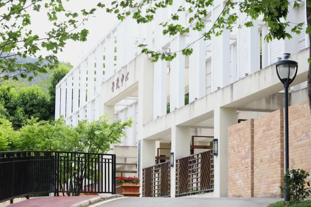 行政中心作为学校标志性建筑之一,坐落于智园通往慧园的道路旁,它像一位威严的长者默默注视着来来往往的学子。