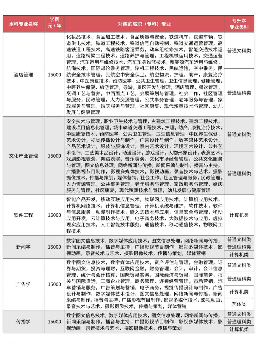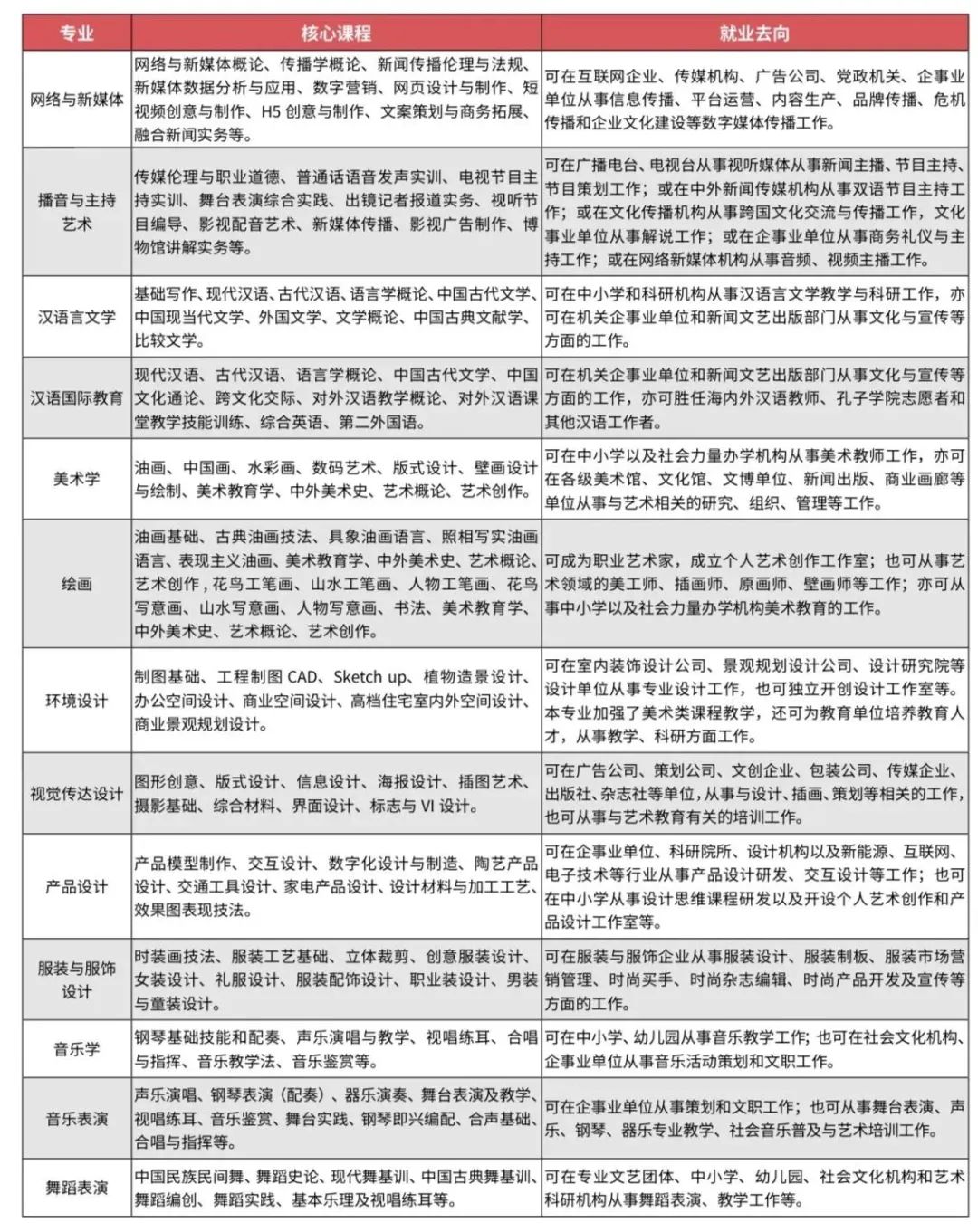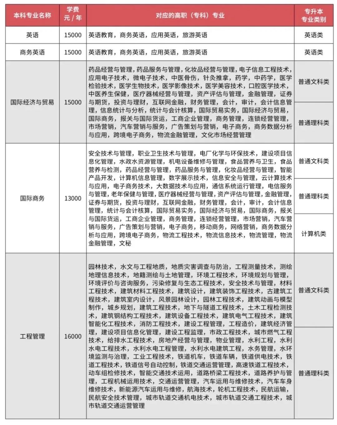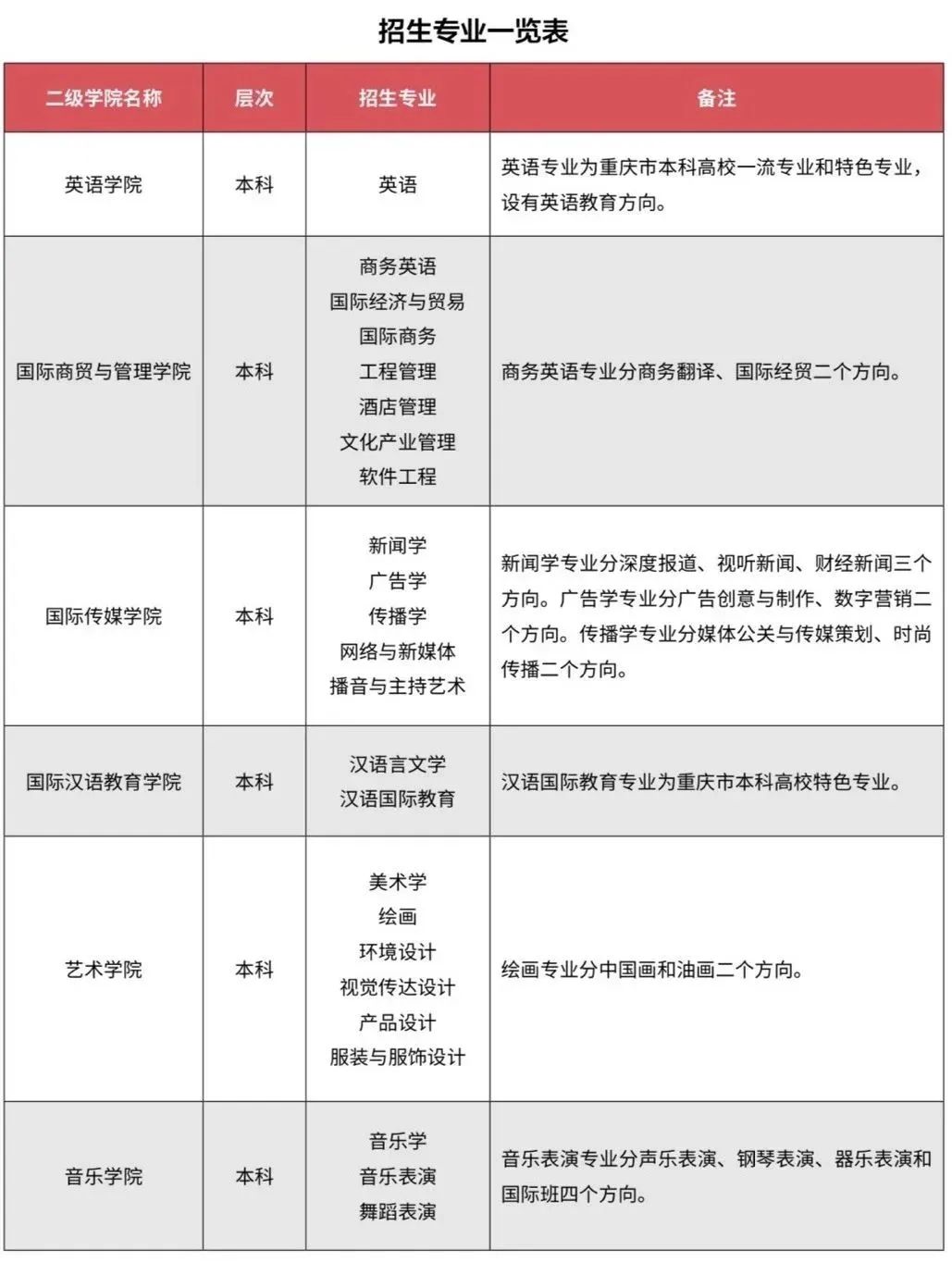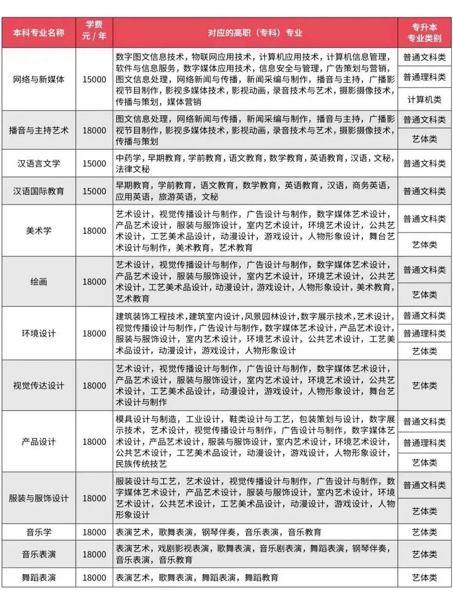 招生专业一览表