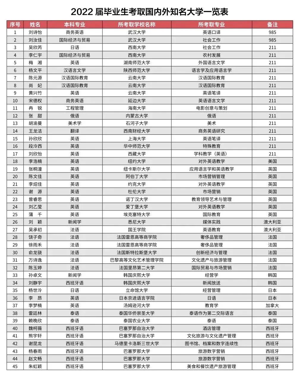 学校以促进毕业生充分就业、高质量就业为目标,建立了完善的就业服务体系,极力引导大学生创新创业,努力开拓境外就业市场,2022届毕业生考取研究生171人,其中近五十名毕业生考取国际知名大学和国内一流高校。