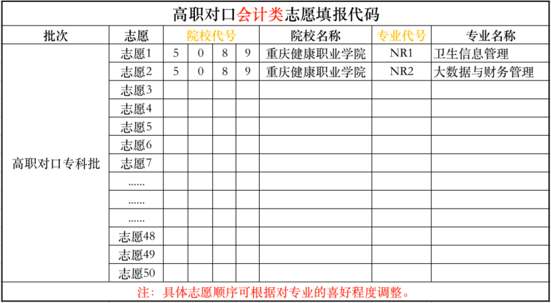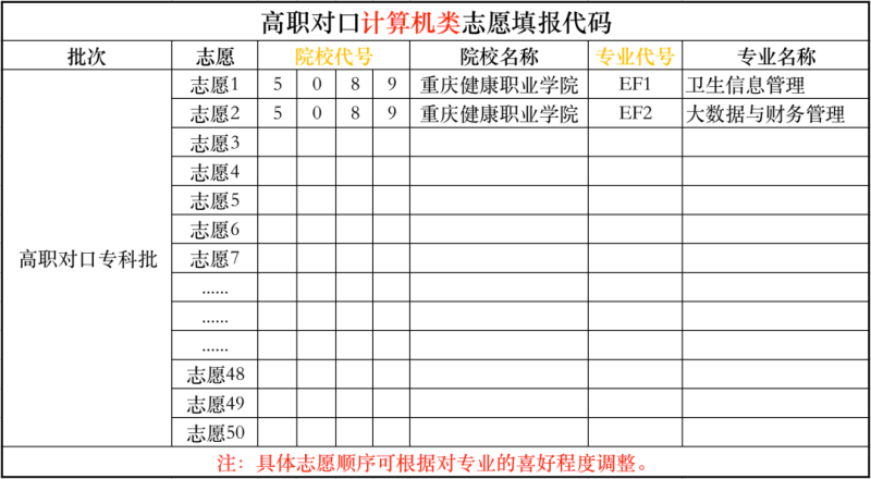 志愿填报说明