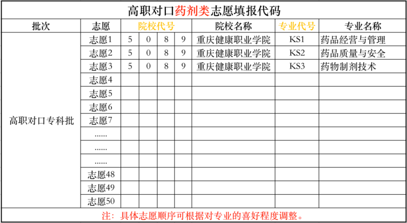 按照喜好程度调整志愿顺序
