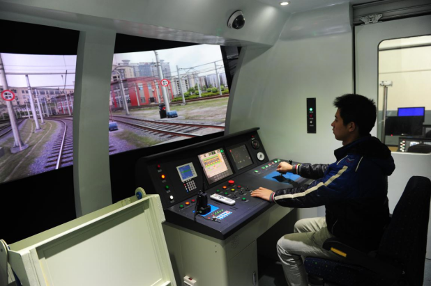 城市轨道交通模拟驾驶实训室 地铁列车驾驶模拟器系统的基本配置包括:完整的1:1司机室、全套操纵及数据采集输出模块(含主操纵台、副操纵台、设备柜等)、三自由度电动平台(系统能提供列车运行的动感仿真,以增强运行环境的逼真度,并可使受训司机亲身体验列车运行状况与其操纵控制的对应关系,训练司机掌握平稳操纵的技能)、水平视角达120度的柱面三通道视景仿真子系统、5.1声道音响子系统、教员监控系统、控制柜以及各类辅助设备等。 |