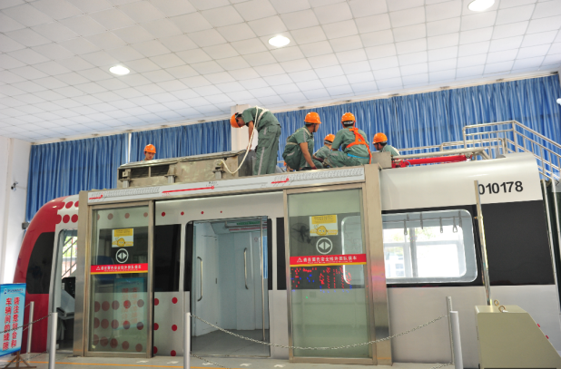 城市轨道交通车辆检修实训室 实训室由重庆地铁一号线和三号线车辆模型(三节、比例1:8)、重庆地铁一号线动车转向架和拖车转向架模型(钢制能拆装,比例1:2)、重庆轻轨三号线前行动车转向架(钢制能拆装,比例1:2)、重庆地铁密接式半自动车钩模型(透明高强度PVC,比例1:1)组成。能够为学生提供多种转向架结构组成、功能原理等直观教学;实现转向架部件的拆装、测量、维护检修实践活动;能够实现转向架组装后调整和试验实践活动。能够为学生提供密接式自动车钩的结构组成、功能原理等直观教学,以及车钩连挂、解钩和维护检修实践活动。能够为学生提供车辆总体组成、外形、编组直观教学。 |