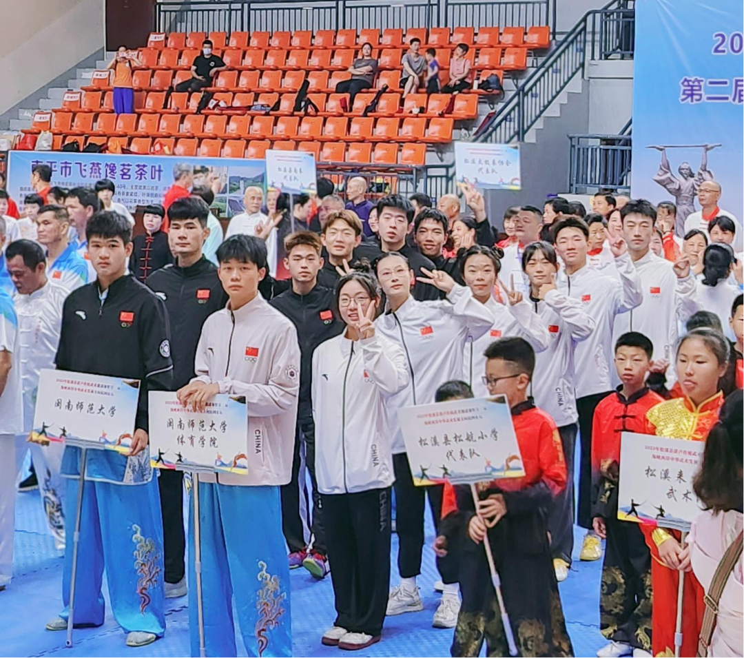 我校武术队秉承着“习武人、修武德、强身心、健体魄”的队训,在领队相昌庆副教授、教练蒋湘平、王荣齐两位老师的带领与悉心指导下,体育学院13名学子斗志昂扬,奋勇争先,以乘风破浪的势头在两天的对决中共获2金6银14铜的佳绩。