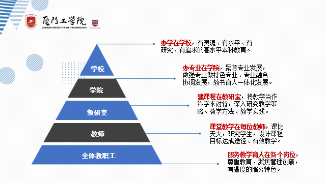 学校的办学要依靠全校力量,各尽其责,以本为本,以教学和育人工作为中心,做好学科专业建设,特别是做好教学改革,讲好每一节课,形成具有