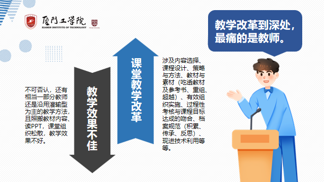新要求:课堂教学模式、教学方法及教学成效评价改革进入深水区,归纳起来就是要注重几方面的变革:一是教学模式变——从低阶教学向高阶教学改变(从低到高可分为5级:学生被动听课,老师问学生,学生问老师,学生质疑老师,师生辩论);二是认知强度变——从知识认知向智慧学习迈进(分析、归纳、抽象、选择、决策、突破、综合等,带着问题的教与学);三是人才要求变——从培养狭义专业人才向培养跨学科、复合型、应用型人才转型(学术视野、解决问题、专业能力)。