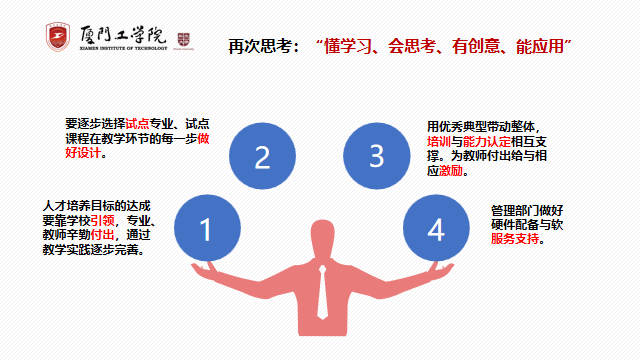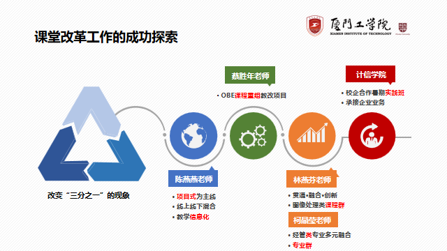这几年经过努力,在教学改革方面有一批老师已积累了很好的经验,我校的教学改革已涌现出一批按照OBE教学理念即能力导向、成果导向的优秀