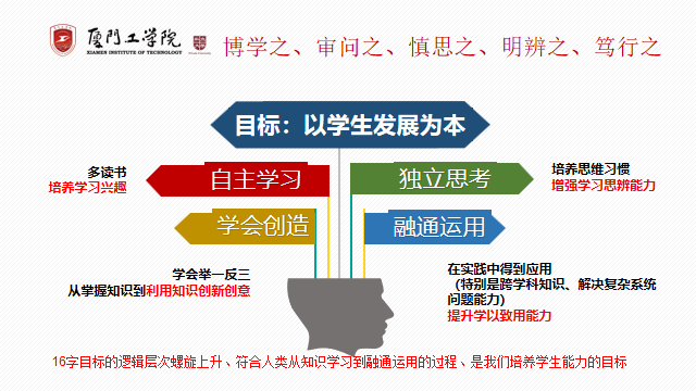 中国教育文化中“博学之、审问之、慎思之、明辨之、笃行之”,清晰地阐述了人才培养目标“自主学习 独立思考 学会创造 融通运用”逻辑的层次,提示我们要“授人以鱼不如授人以渔”。