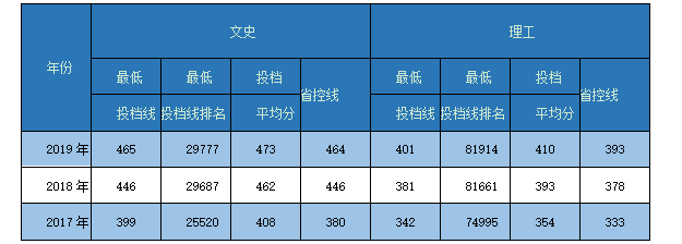我校在闽招生近三年投档线及排名情况表