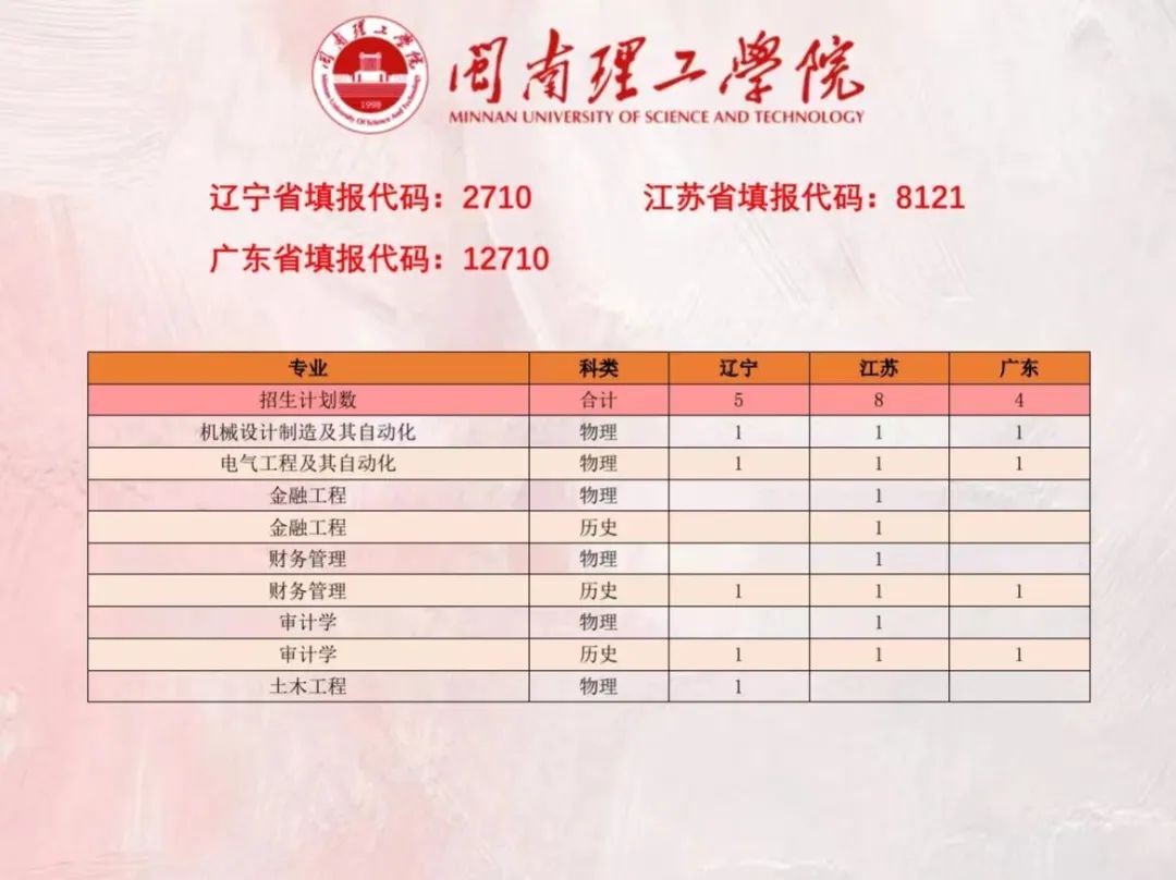点击蓝字,关注我们每一次的梦想,闽南理工都与你同在2022年,闽南理工学院面向全国17个省(自治区、直辖市)计划招生普通本科3720名,其中福建省本科计划为3177名(福建省院校代码:1140),外省计划招生543名。1福建2辽宁、江苏、广东3浙江、海南4山西、安徽、四川、贵州、甘肃5内蒙古、河南、广西、云南、西藏编辑 | 吴云辉制图 | 蔡思思 王振遥审核 | 纪龙溪 蒋振耀出品 | 闽南理工学院招生就业处
