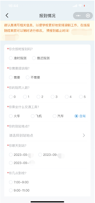 该项信息主要是学校了解新生及家长的来校情况,以便于学校安排接待车辆接站,新生可根据自己的行程安排修改。