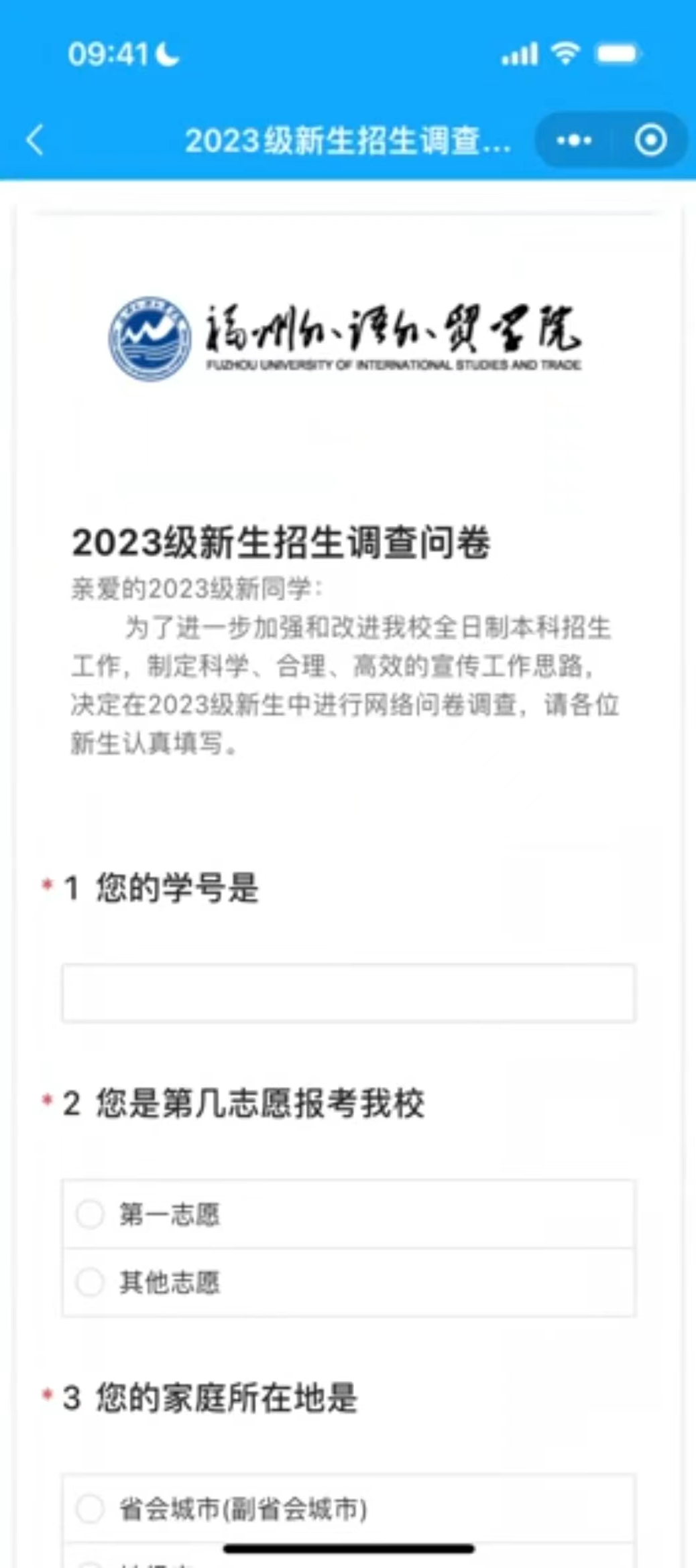 先填写2023级新生调查问卷,填写完问卷调查之后方可进入下一项。