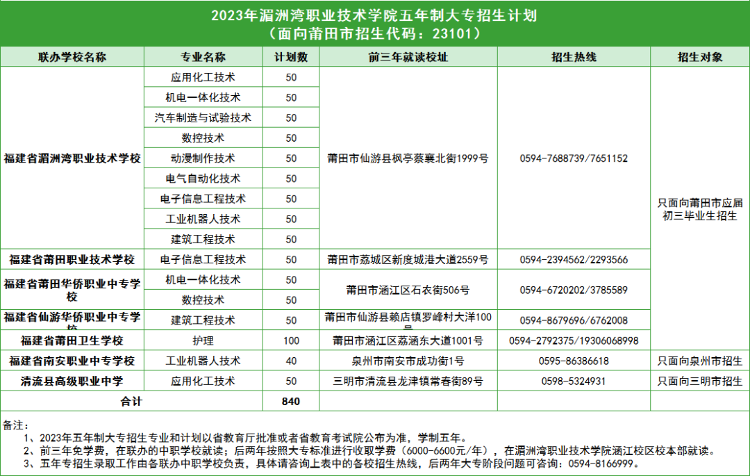 请有意愿报考我院五年制高职的福建省内初三毕业生和家长,具体联系上方表中的各所联办中职校的招生热线电话,欢迎垂询!
