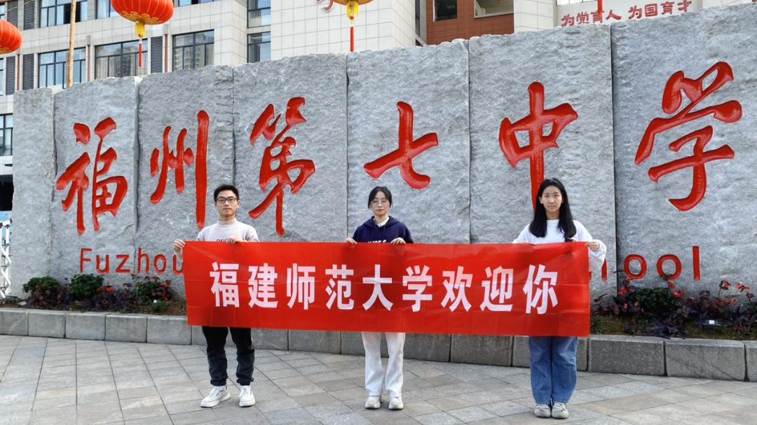 2024年1月19日,福建师范大学“来师大就队”前往福州外国语学校开展“我为母校代言”专项社会实践活动。虽顶着寒风,队员们却怀着火一般的热情,认真向高三学子宣传福建师范大学的办学实力和校园文化,鼓励广大学子报考师大,力求在更多人心中种下福建师范大学的种子。