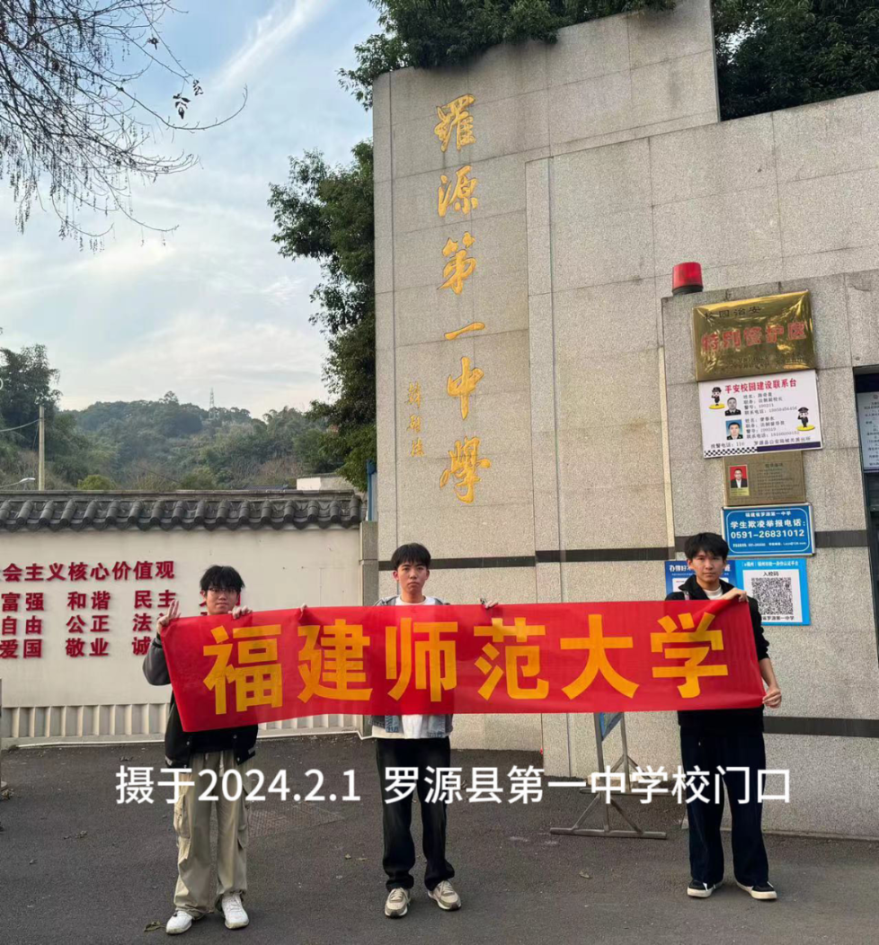 2024年2月1日,福建师范大学“圆梦仓旗梅香如故”宣讲队前往罗源县第一中学开展“我为母校代言”专项社会实践活动。团队成员精心策划宣讲行程,细致安排时间、地点和人员,用心准备所需物资和宣讲材料,以吸引有潜质的目标学生,并鼓励更多校友参与招生宣传,提高福建师范大学知名度。