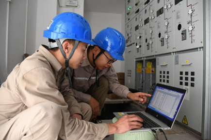 5月30日,工作人员正在福州十五中新建电房进行设备调试