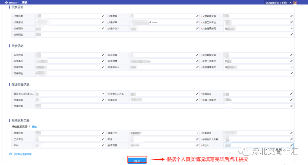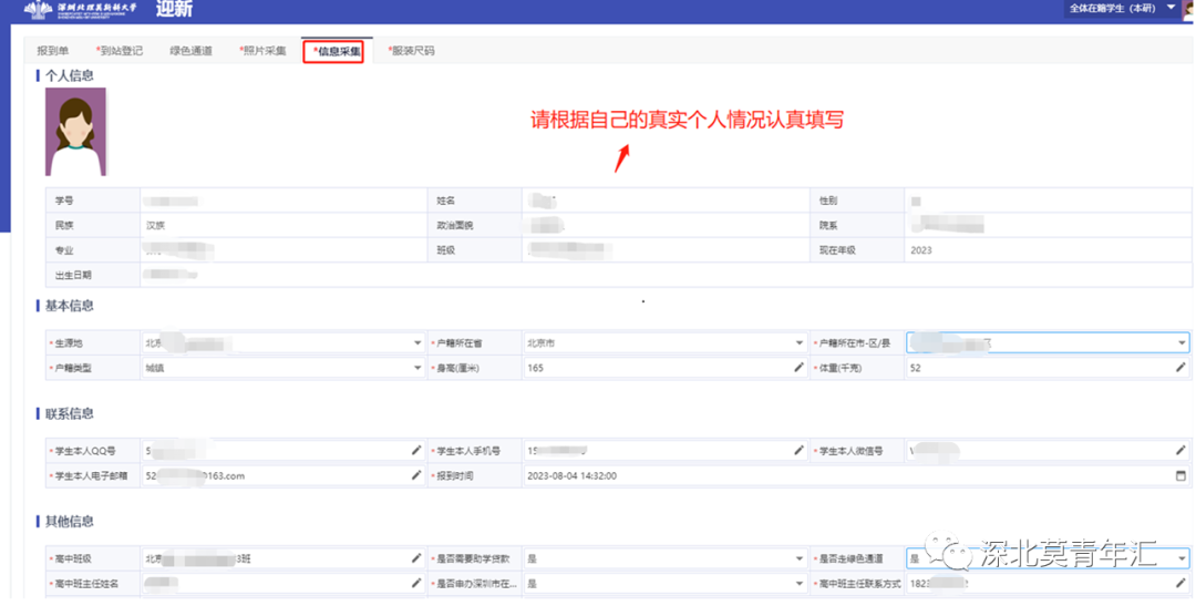 点击“信息采集”菜单,学生如实填写“信息采集”所需要的