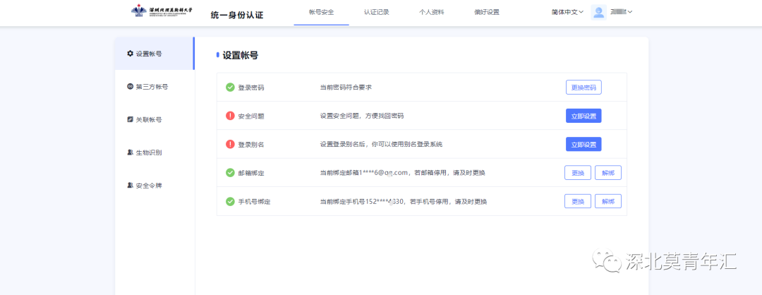 (3)登录系统后,在工作台右上方点击“个人中心”,设置标红项,保障账号安全。