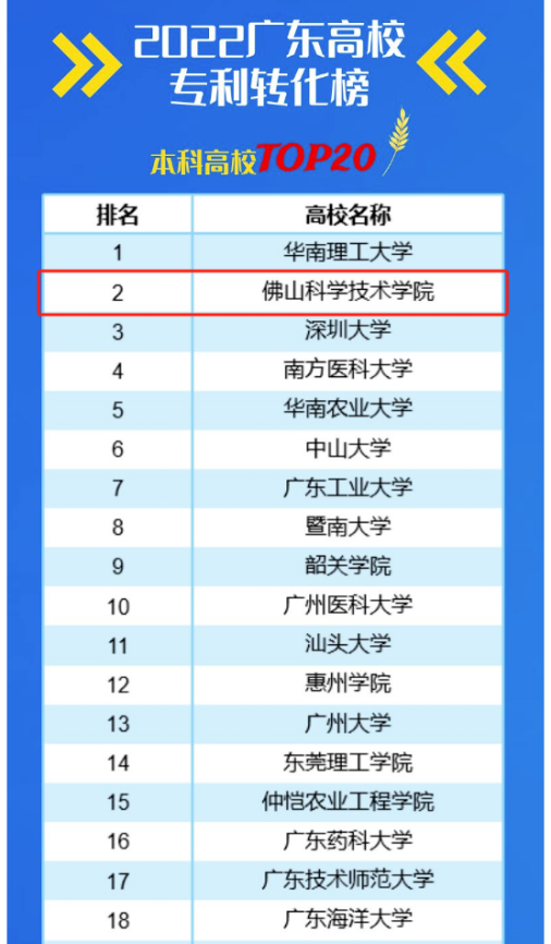 日前,《广东高校科技成果转化年度报告(2022)》正式发布,我校位居全省2022年创新创业榜第一名、2022广东高校专利转化榜第二名。