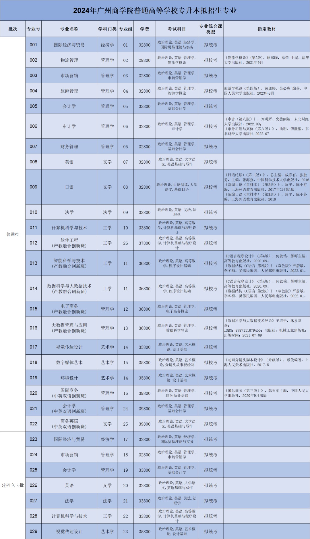 2024年普通专升本拟招生专业