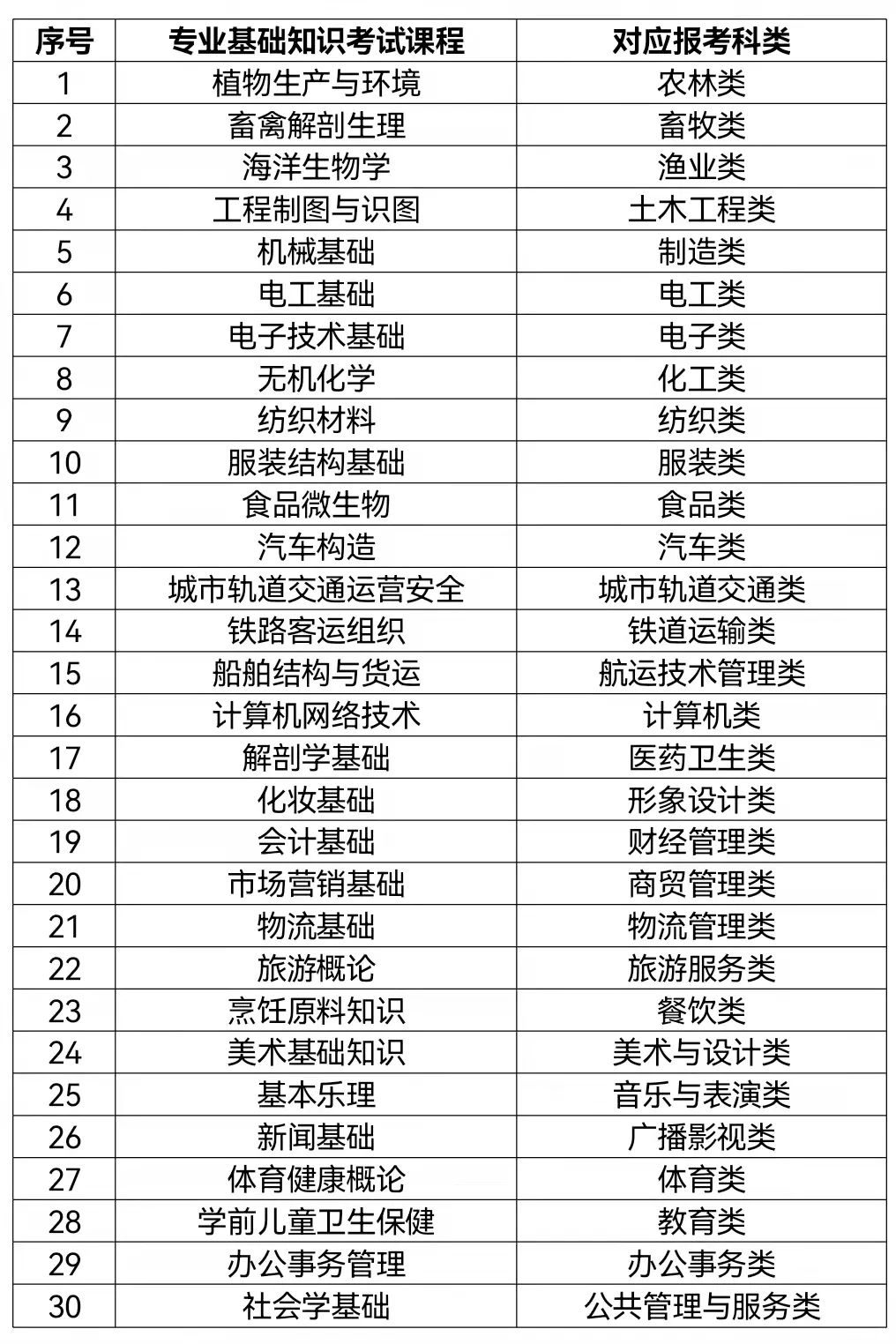 2.普通高中类和特殊群体类的考生不分报考科类。3.高职分类招考安排的部分本科招生计划仅面向中职学校类考生。福建省中职学校学业水平专业基础知识考试课程与报考科类对应表
