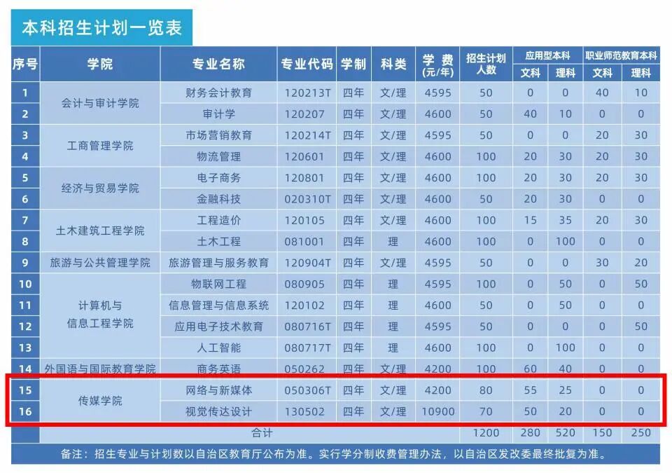 传媒学院坚持“以服务为宗旨,以就业为导向,走产学结合发展道路”的办学方针,根据广西地方经济社会发展对人才的需求,以服务广西传媒产业和文化创意产业为专业建设思路,积极探索和实施“校企合作,工学结合”人才培养模式,强化学生职业技能和综合素质的培养,已为社会经济发展培养了一批高素质技能型专门人才。