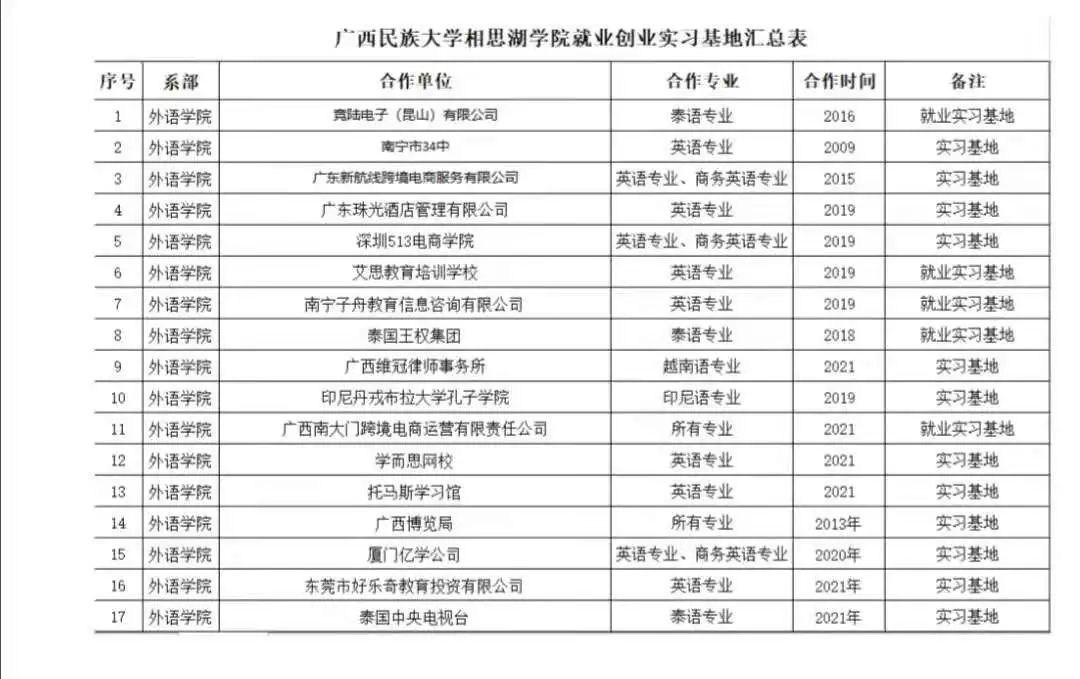 广西民族大学相思湖学院外国语言文学学院开设英语、商务英语、越南语、泰语、印尼语5个专业,其中印尼语专业为广西首届民办高校重点专业。现有在校生896 人。学位授予门类为外国文学类。外语学院各专业充分利用位于中国—东盟自由贸易区核心区域的区位优势及其依托的广西民族大学已经形成的民族性、区域性、国际性办学特色和优势,立足广西、背靠西南华南、面向东南亚,以培养适应区域经济和社会发展需要,具有创新精神和实践能力的高素质、应用型人才为办学目标,培养具有扎实的外语基础理论知识和听、说、读、写、译的技能,有较宽广的知识面和较强的独立处事能力,有较高的综合素质外语高级应用型、国际化、双语化人才。