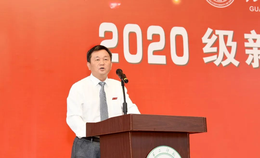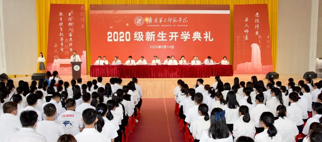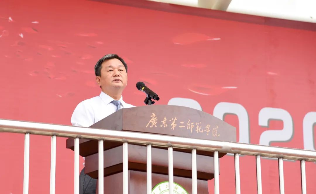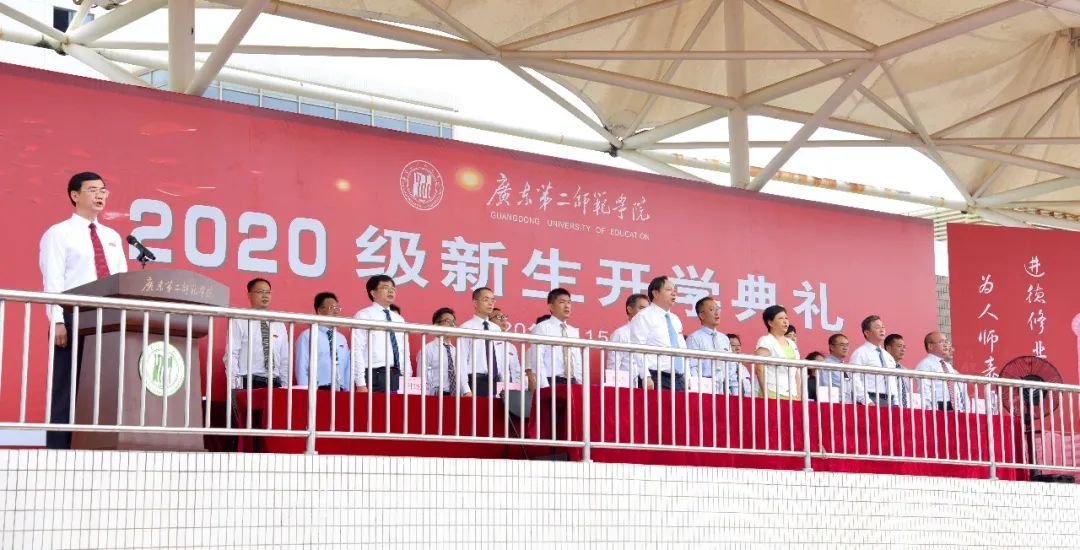 今天站在这里,我的心中充满着喜悦。空旷的校园,上周因你们师兄师姐的返校开始恢复常态,今天又因为你们的到来,有了更多的生机与活力。有学生才成其为学校,正是因为一年又一年新同学的到来,学校教书育人的使命才得以延续,传递文化的薪火才永远燃烧。同学们,感谢你选择广东二师,广东二师欢迎你!2020年是不平凡的一年,2020级新生也注定是不平凡的一届。年初开始的疫情严重影响了你们正常的学习,而且十七年来高考首次推迟,你们经历的不仅是一场迟到的升学考试,还是一次终身难忘的“大考”。但你们用优秀的成绩证明,肆虐的新冠疫情不能阻断你们求知的渴望,再大的困难也不能阻挡你们一往无前的青春步伐!和你们一样,我们学校也经受了疫情的重重考验。自疫情发生以来,在学校党委的坚强领导下,全校师生齐心协力、众志成城,一万多名师生员工迄今无一感染。学校始终把师生的生命安全和身体健康放在第一位,行动迅速,部署周密,从校园管理、清洁卫生到同学们,新的生活已经开始,衷心祝愿你们在这里度过幸福快乐充实的时光,也希望你们珍惜每一寸光阴,发奋学习、苦练本领、磨砺意志、强健体魄,以自己的激情、勇气和力量,在汹涌澎拜的时代大潮中高扬起青春的旗帜!