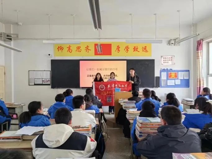 永登县第一中学宣讲团成员怀着对天师大的热爱和自豪,利用寒假实践回访了高中母校,开展宣传活动。