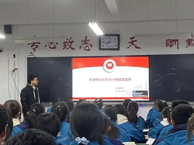 宣讲中,团队成员重点突出了天师大的优势和特色,包括师资力量、学科建设、校园文化等方面。团队成员通过发放学校的专业介绍手册、播放招生宣传片等,进一步展示了天师大的办学实力。团队精心设计了提问环节,与同学们互动交流。同学们热情洋溢,踊跃提问,表达了对大学生活的好奇和向往。
