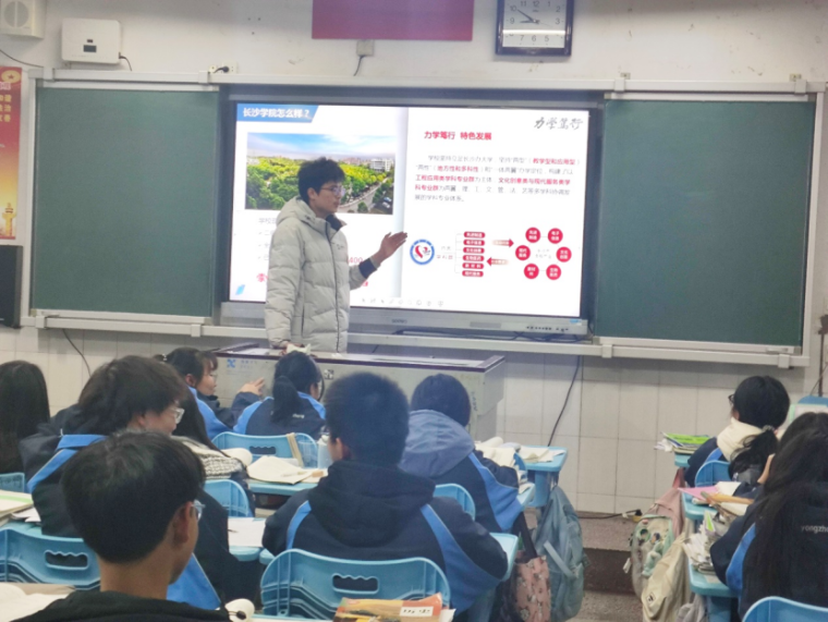 校友携手共成长此次回访母校宣讲活动搭建了同学们与长大之间沟通的桥梁,不仅提高了团队三人的表达能力和沟通能力,还全面展示了学校与学院的各项优势,使永州四中学生对我校有更全面的了解,助推招生宣传顺利开展,助力学校高质量发展。