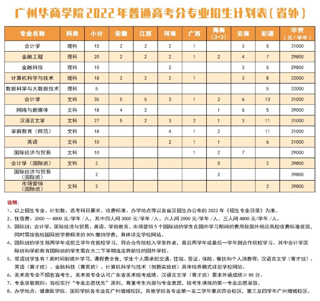 各省区招生计划表详见下图,各招生专业、计划数、专业组、收费标准、办学地点等以各省区招生办公布的2022年《招生专业目录》为准。