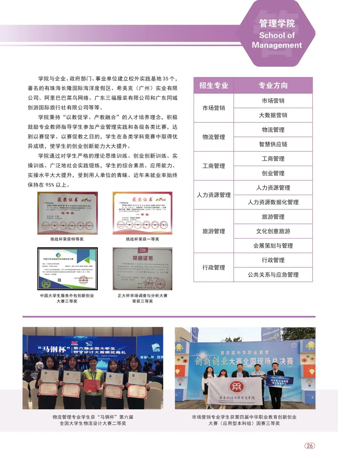 学校先后荣获“广东省十佳独立学院”、“中国民办高等教育优秀院校”、“广东省最具就业竞争力独立学院”、“广东省最具综合实力学院”、“中国财经类独立学院排名第3位”、“广东当代民办学校突出贡献奖”等称号。