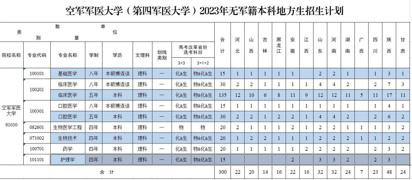 2023年无军籍本科地方生招生计划