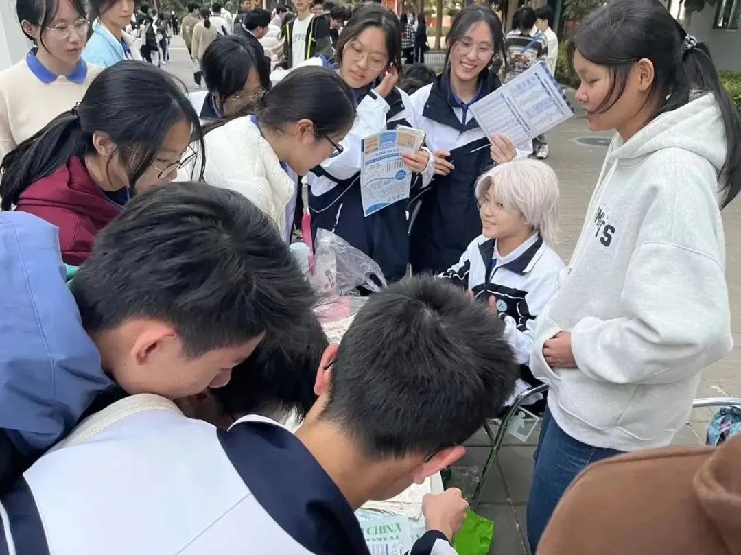 在摆摊过程中,队伍采用有趣新颖的游园会形式,让红岭学子在参与趣味盖章活动的同时,能够深入了解并获取实用的信息。完成游园盖章任务即可兑换奖品,激发了他们的参与热情和积极性。除此之外,队伍成员还邀请了优秀的校友代表进行讲座分享,他们与红岭学子分享备考时的学习方法和经验,用自己的亲身经历给予学子们正确的引导和鼓励,帮助他们更好地应对高考的挑战。