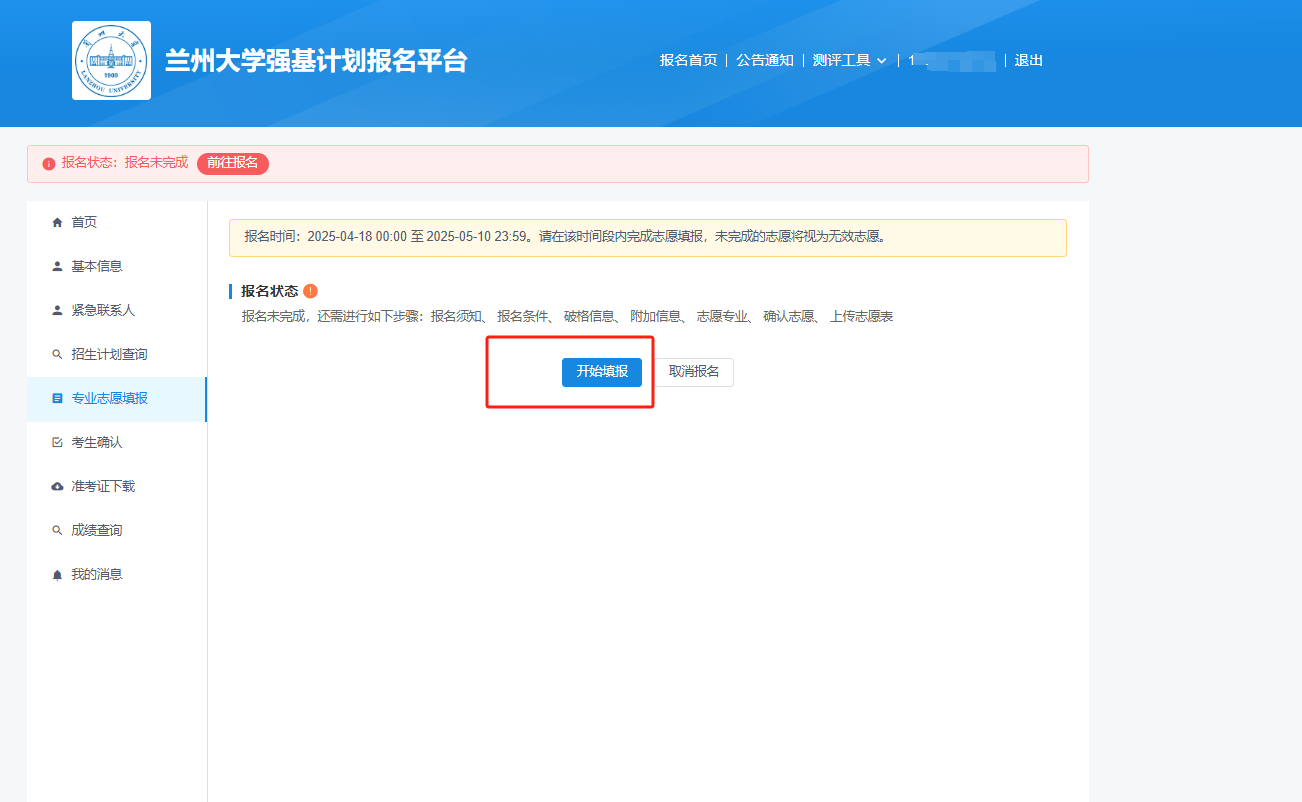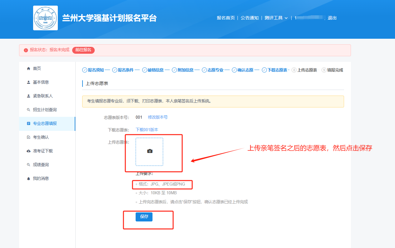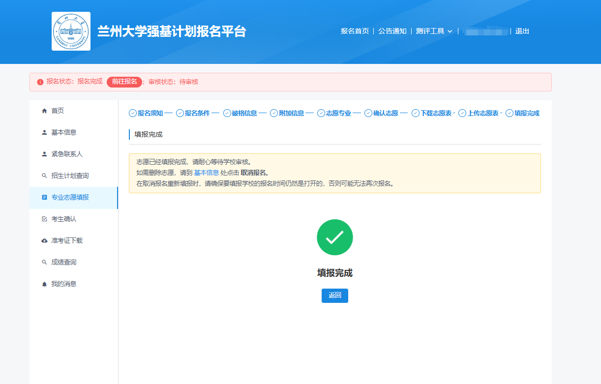 填报至此页面,显示报名完成,待我校审核。审核结果请及时关注