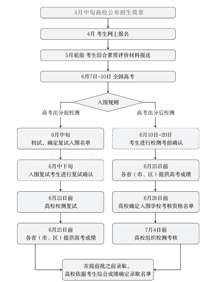 1.考生确认:在各院校所规定的时间内,报名强基计划的考生须进入报考院校的系统完成考生确认环节,并上传承诺书,也就是确认是否参加该校考核。