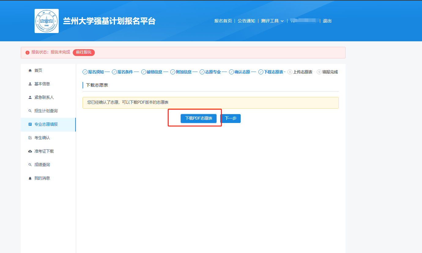 点击“下载PDF志愿表”,并打印PDF文稿,并由考生本人签字。