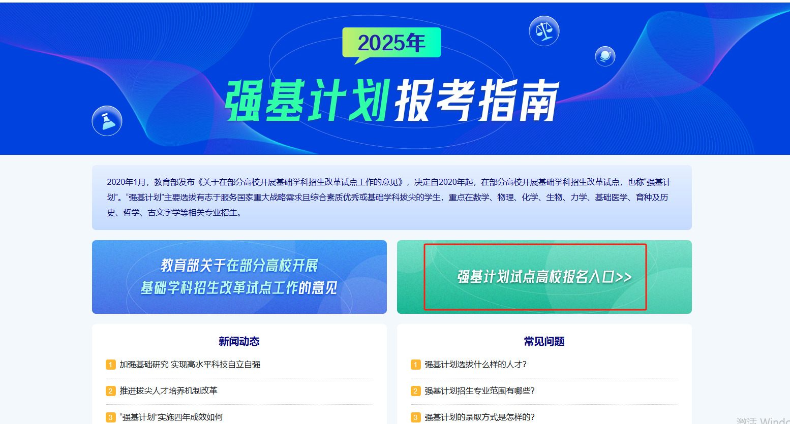 1.注册报名:强基计划报名平台为教育部阳光高考平台:https://gaokao.chsi.com.cn