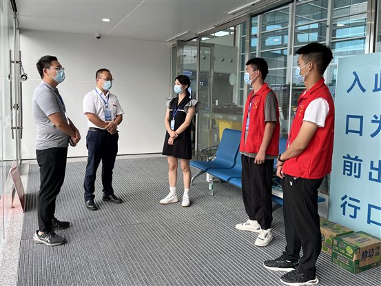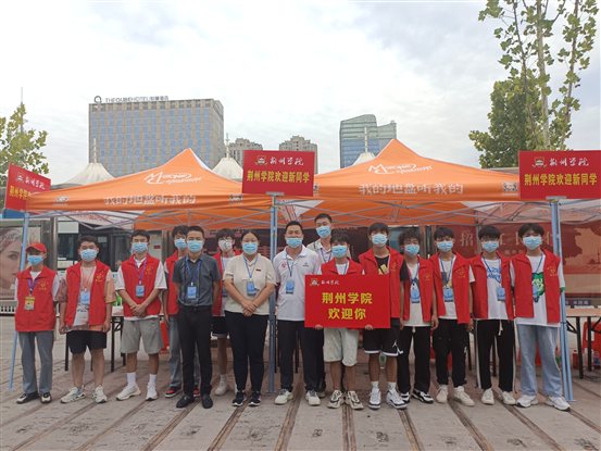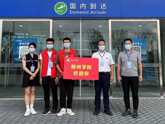 本网讯(记者 余紫滨)9月8日下午,代理校长陆博,副校长付秋峰,学校办公室主任李泽瞳,招生就业处处长范永裁一行深入荆州机场、荆州火车站、汽车站等校外迎新点慰问一线迎新工作人员和学生志愿者并指导工作。校领导详细了解志愿者工作流程,仔细询问接待的学生数量、工作用餐、车辆安排等情况,并对站点志愿者和工作人员的迎新工作给予充分肯定并表示感谢,叮嘱大家在热情、细致、高效地做好接待工作的同时,要注意保重身体,确保迎新工作圆满完成。