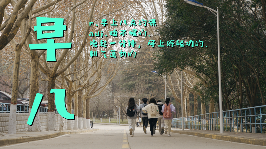 每天早上7点59分或许都能看到背着包一路狂奔的同学!记住,他们不是在锻炼身体,只是在赶早上八点的课~。