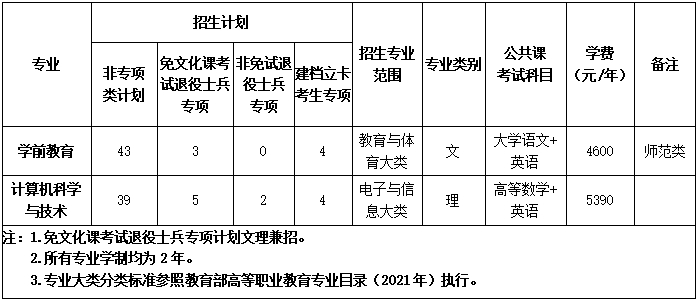 1.招生专业及计划: