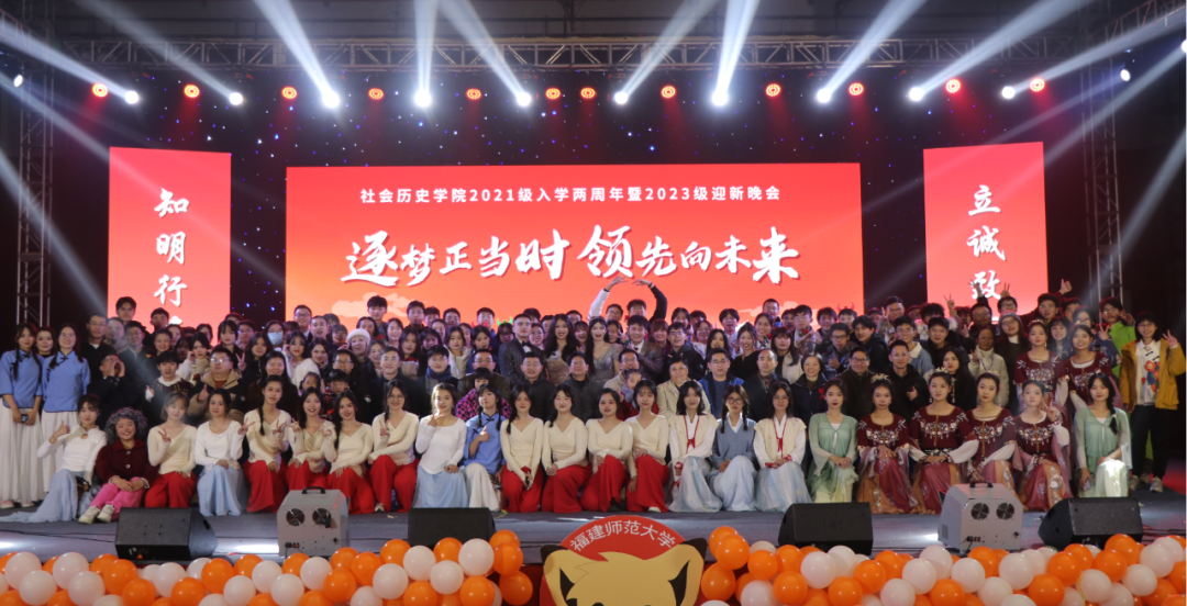 2023年12月23日晚,社会历史学院2021级入学两周年暨2023级迎新晚会于旗山校区图书馆大礼堂隆重举行。活力四射的歌舞串烧、精彩绝伦的群口相声、温暖感人的音乐短剧、朝气蓬勃的舞蹈串烧,展现青春的多姿多彩;舞蹈、魔术、歌曲串烧、走秀,提笔书写峥嵘岁月,落笔仍有万千感慨;小品、歌曲、古典舞,少年心中有青葱岁月,亦有祖国山河。面朝明日,社历学子更踏层峰赴山海,奋楫笃行向未来!