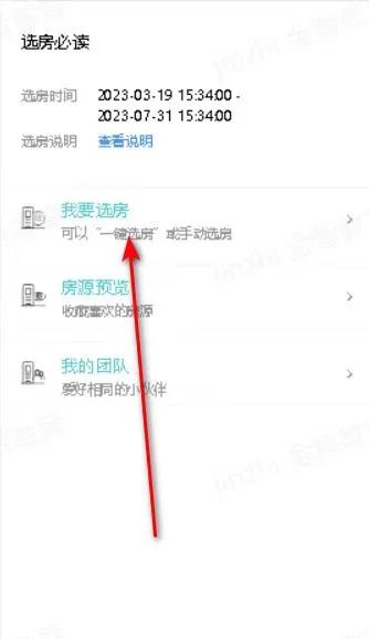 点击在线选房如下图,学生可根据意愿顺序一键选房,暂不支持组团模式的一键选房。