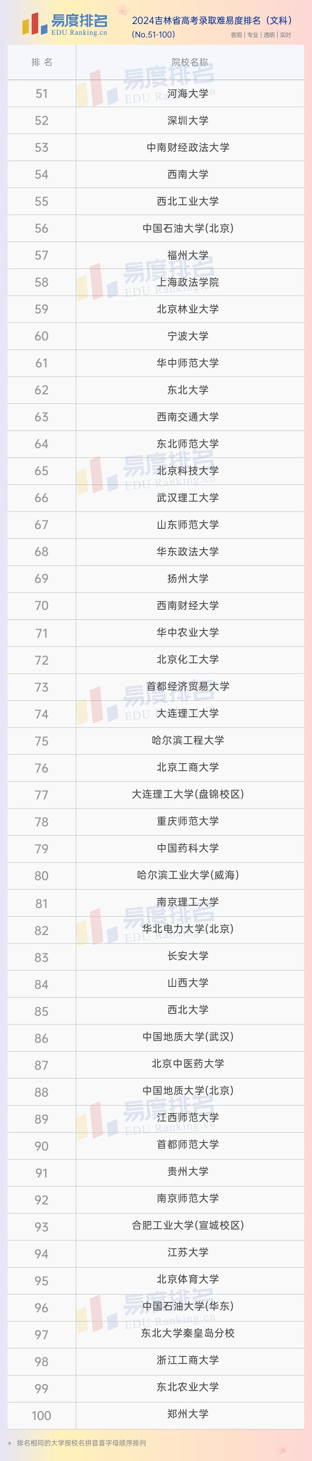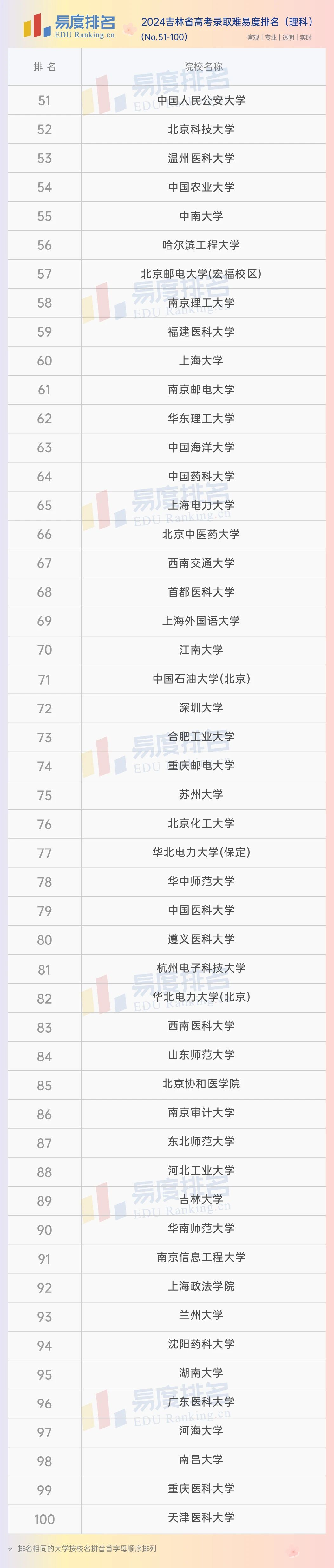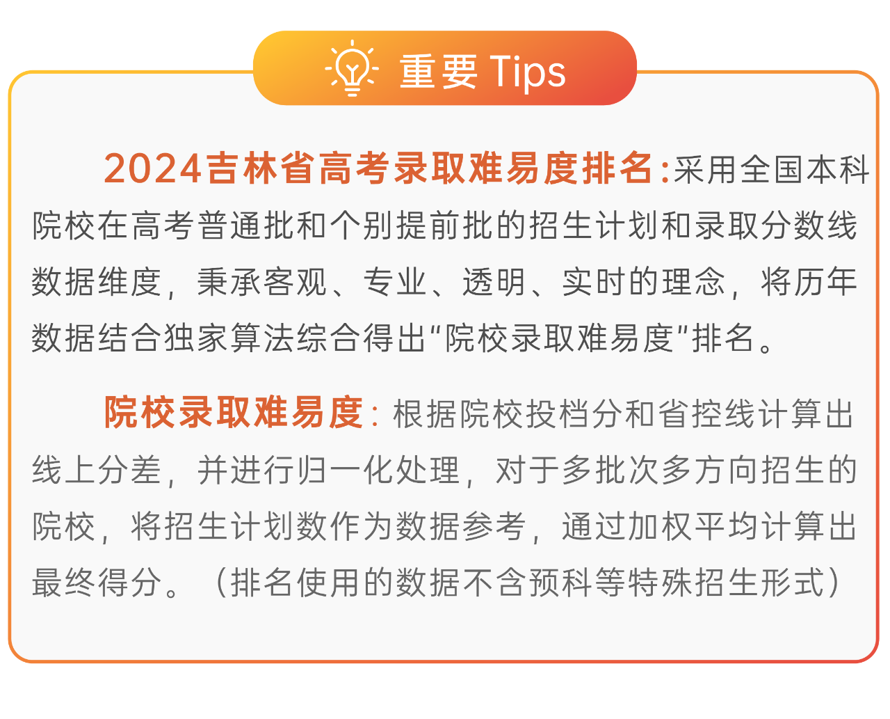 本期将公布“2024吉林省高考录取难易度排名”前100位。(具体排名方式见文末)